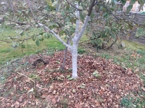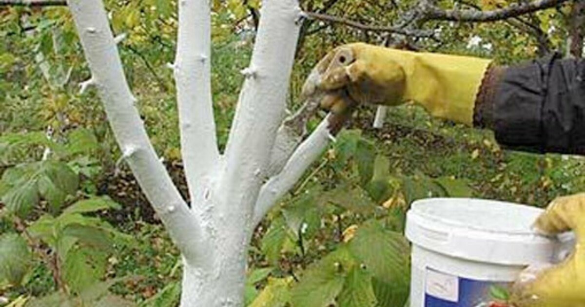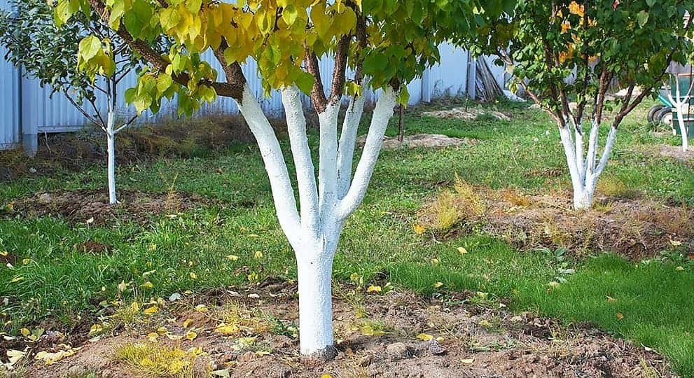 - Для предотвращения солнечных ожогов в зимний период можете белить стволы известковым раствором.